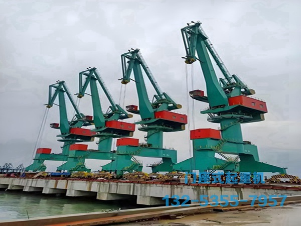浙江宁波门座式起重机厂家13253557957生产的门座起重机是港口码头前沿装卸一般散货和件杂货通用港口装卸起重机。适用于海港,河港码头万吨级船型装卸作业。该机采用下支承四连杆臂架结构,齿条变幅,工作幅度大,工作速度快,起升机构设有两档速度,以适应不同的吊重 需要,可以带载进行水平位移变幅,且能带载作任意角度的平稳旋转。