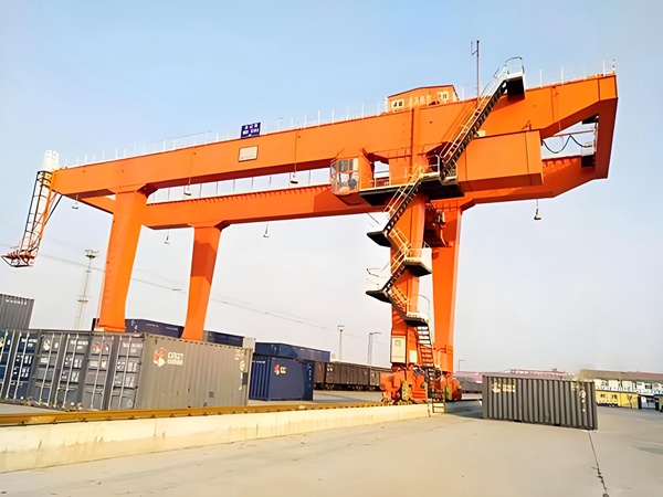 江苏泰州集装箱龙门吊厂家13253557957生产的轨道式集装箱门式起重机行走机构为车轮组 + 轨道,车轮组磨损速度慢,更换周期可达 5-8 年,且无需转向系统;但轨道需定期做防锈处理、调校平整度,修复轨道变形或焊缝开裂问题,尤其是沿海盐雾环境下,轨道防锈成本会有所增加,这部分维护成本占比约 15%~25%,整体低于轮胎式。