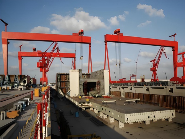工况匹配:按主造船型(散货船 / 集装箱船 / LNG 船 / 邮轮)的最大分段重量、尺寸,确定起重量、跨度、起升高度;船坞长度决定大车运行行程;