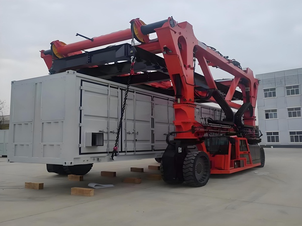 广东韶关集装箱跨越车销售厂家生产的储能柜跨运车是专为重载、高价值、高敏感的储能集装箱 / 储能柜设计的门架式自走搬运设备,核心特点是:重载稳定、防震防损、灵活机动、智能安全、一体化作业。