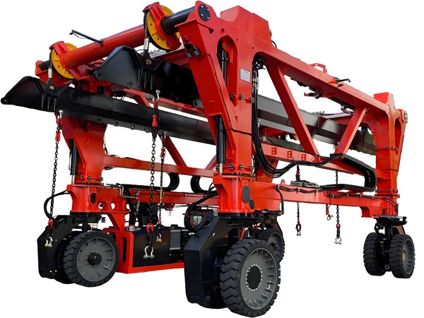重庆集装箱跨越车厂家13253557957生产的集装箱跨运车核心是:不用轨道、不用拖车、单机完成 “卸车 — 搬运 — 堆码 — 装车” 全流程,特别适合铁路股道密集、通道窄、多班列集中到发的场景。