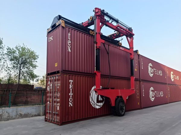 山东烟台集装箱跨越车厂家13253557957生产的跨运车采用跨骑式结构,可直接在货物上方完成起吊动作,并在起升状态下进行运输,实现“起吊—转运—落位”一体化作业。